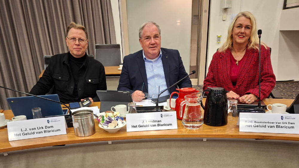 De drie raadsleden van Hart van Blaricum Ramona Beemsterboer, Han Landman en Leon van Urk Dam die om diverse redenen uit de partij zijn gestapt geven uitleg en laten hun nieuwe "Geluid van Blaricum "horen.