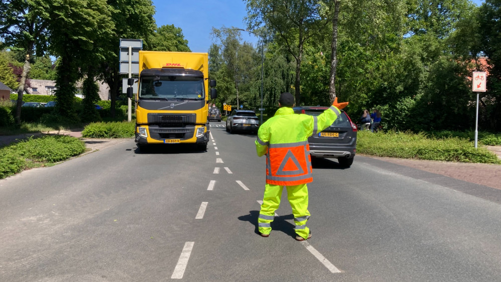 Al vroeg in de morgen staat verkeersregelaar Abdel op de Hilversumseweg in Laren. Zijn taak: aangeven dat mensen die vanuit Laren komen, een omweg moeten maken. De meesten doen een raampje open: "Meneer, wat is hier de bedoeling?"